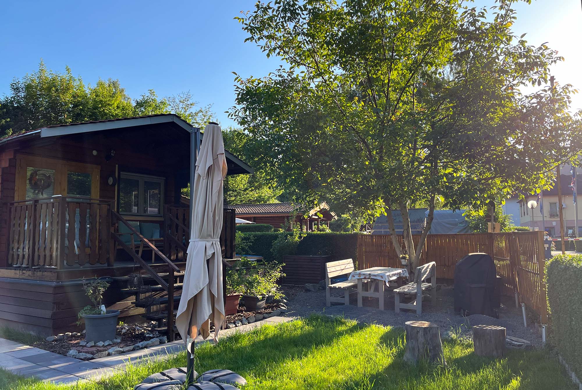 Bei uns finden Sie Ruhe und Entspannung. Gönnen Sie sich eine kleine Auszeit vom Alltag. Auf der eigenen Sonnenwiese mit zwei Liegen und Sonnenschirm können Sie wunderbar relaxen. Für alle, die lieber im Schatten verweilen, bietet unser Nußbaum mit gemütlicher Sitzgarnitur eine angenehme Alternative.